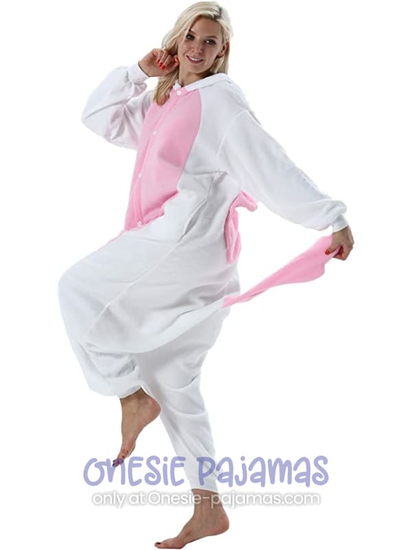 This Pink and White Unicorn Onesie is an Adult onesie pajamas Kigurumi costume for men and women