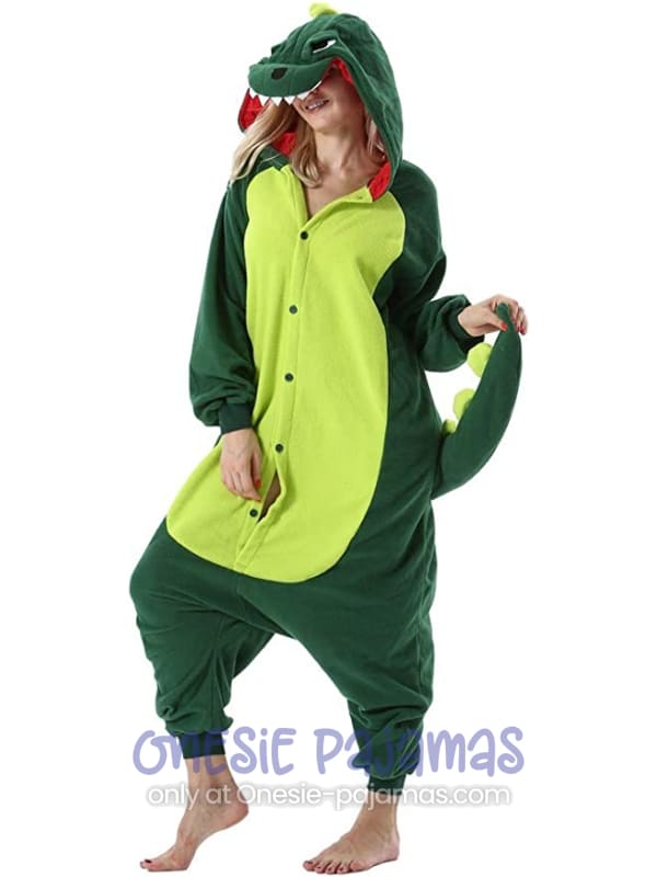 This Green Dinosaur Onesie is an Adult onesie pajamas Kigurumi costume for men and women