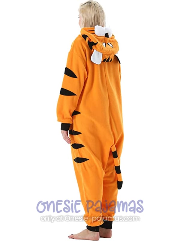 This Bengal Tiger Onesie is an Adult onesie pajamas Kigurumi costume for men and women featuring a design of an Orange Bengal Tiger with black stripes.