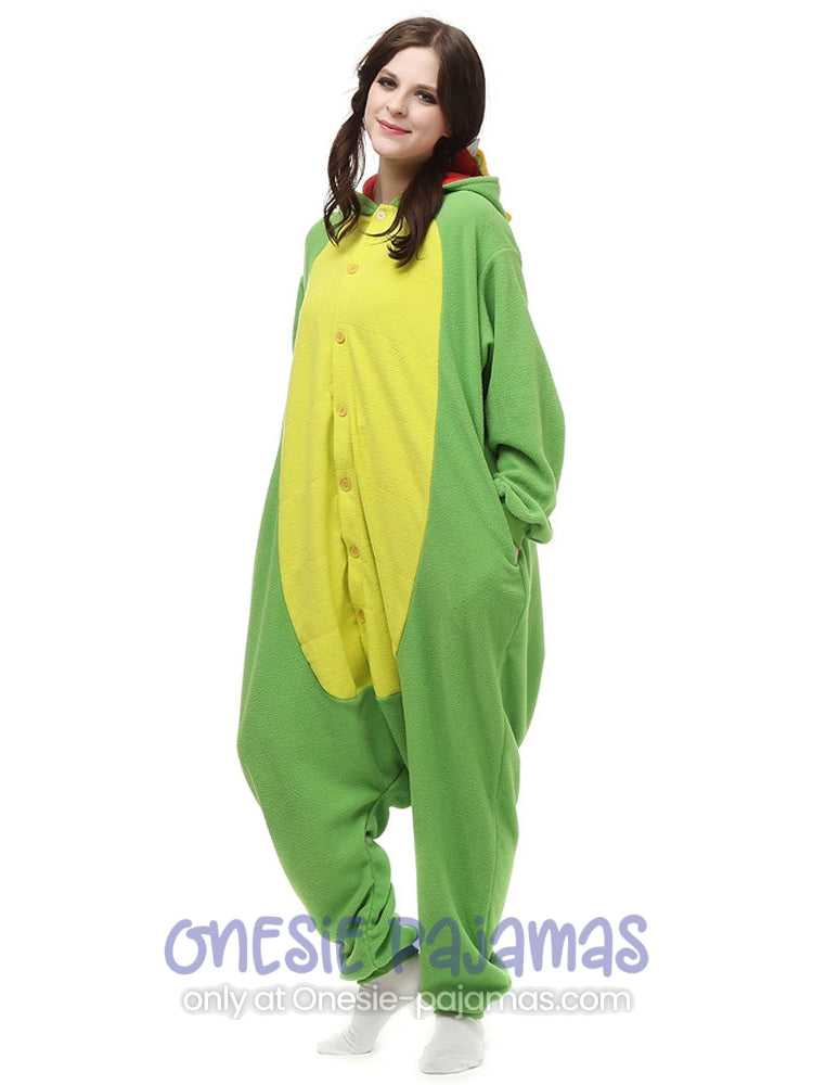 This Chinese Dragon Onesie is an Adult onesie pajamas Kigurumi costume for men and women featuring a design of a Green and Yellow Chinese Dragon ready to spit fire!