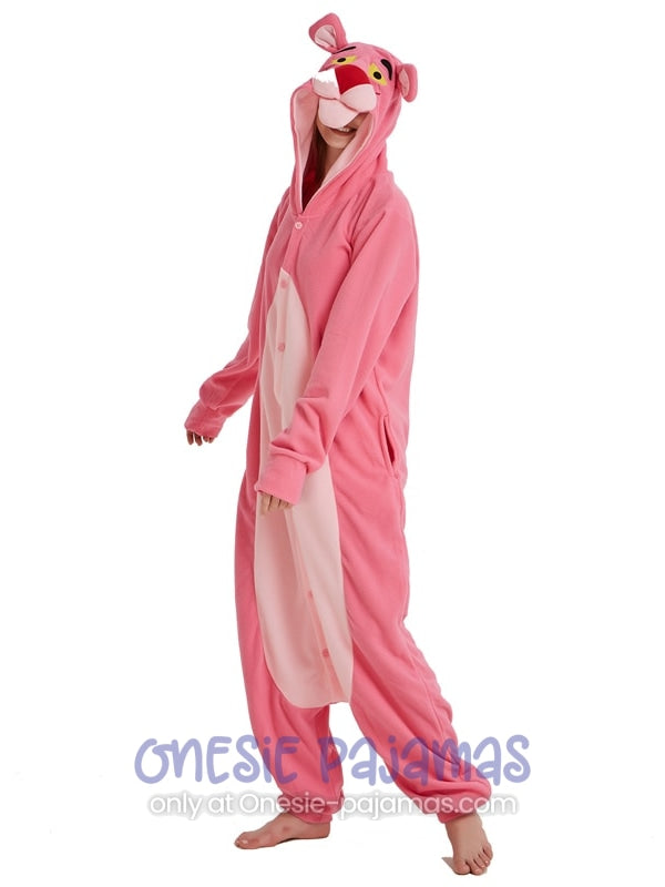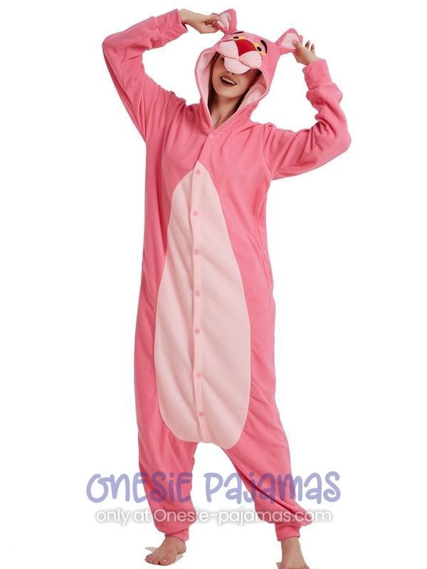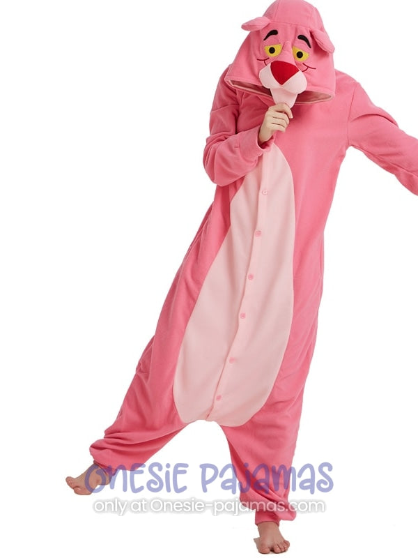 This Pink Panther Onesie is an Adult onesie pajamas kigurumi costume for men and women featuring a design of the famous Pink Panther Tv Show!