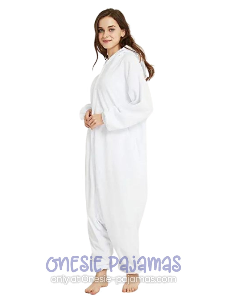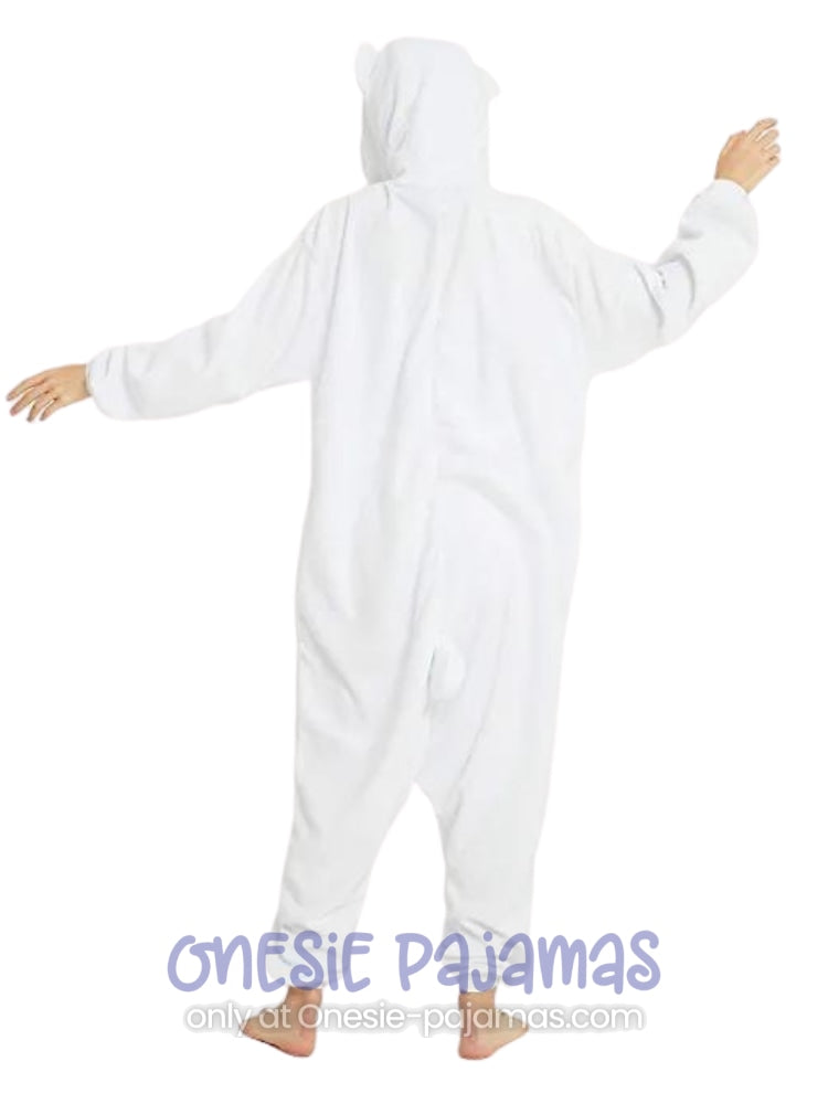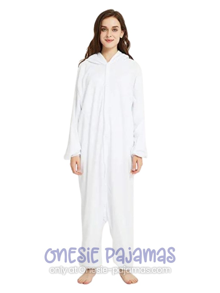 This Polar Bear Onesie is an Adult onesie pajamas Kigurumi costume for men and women featuring a design of a white polar bear