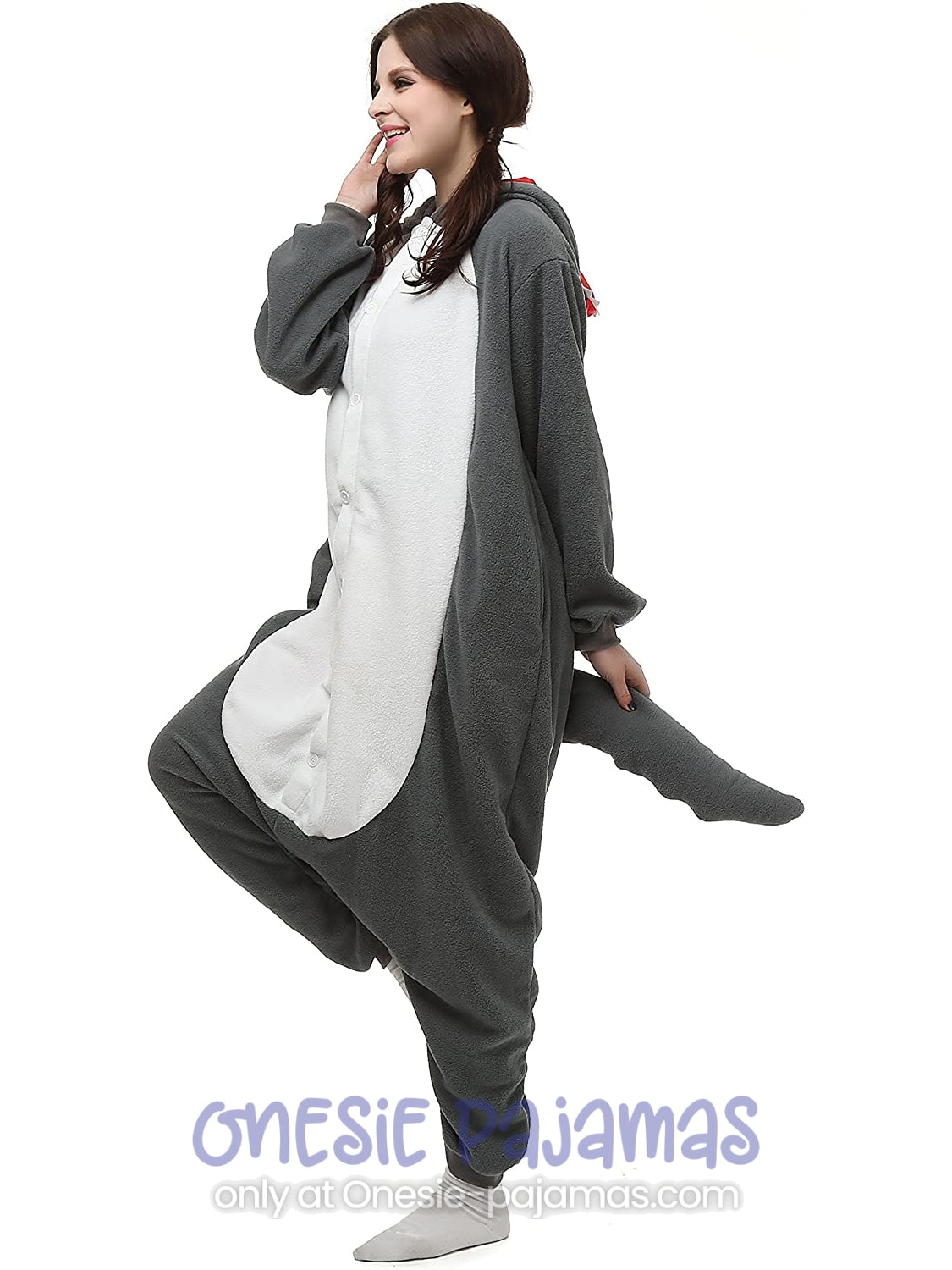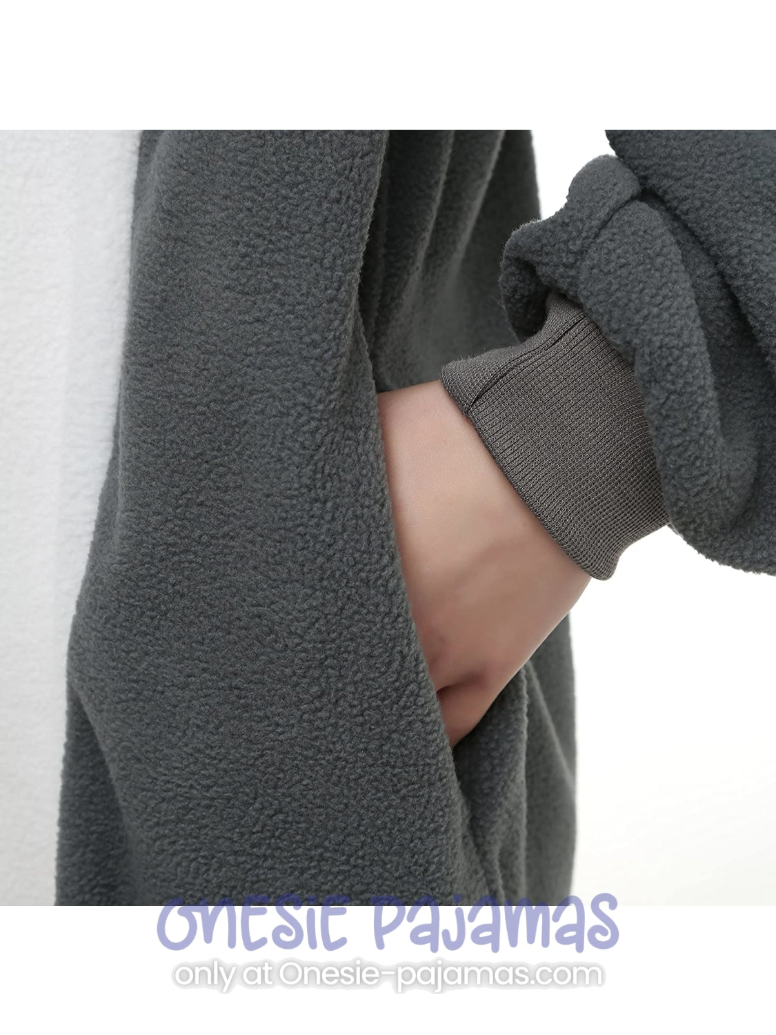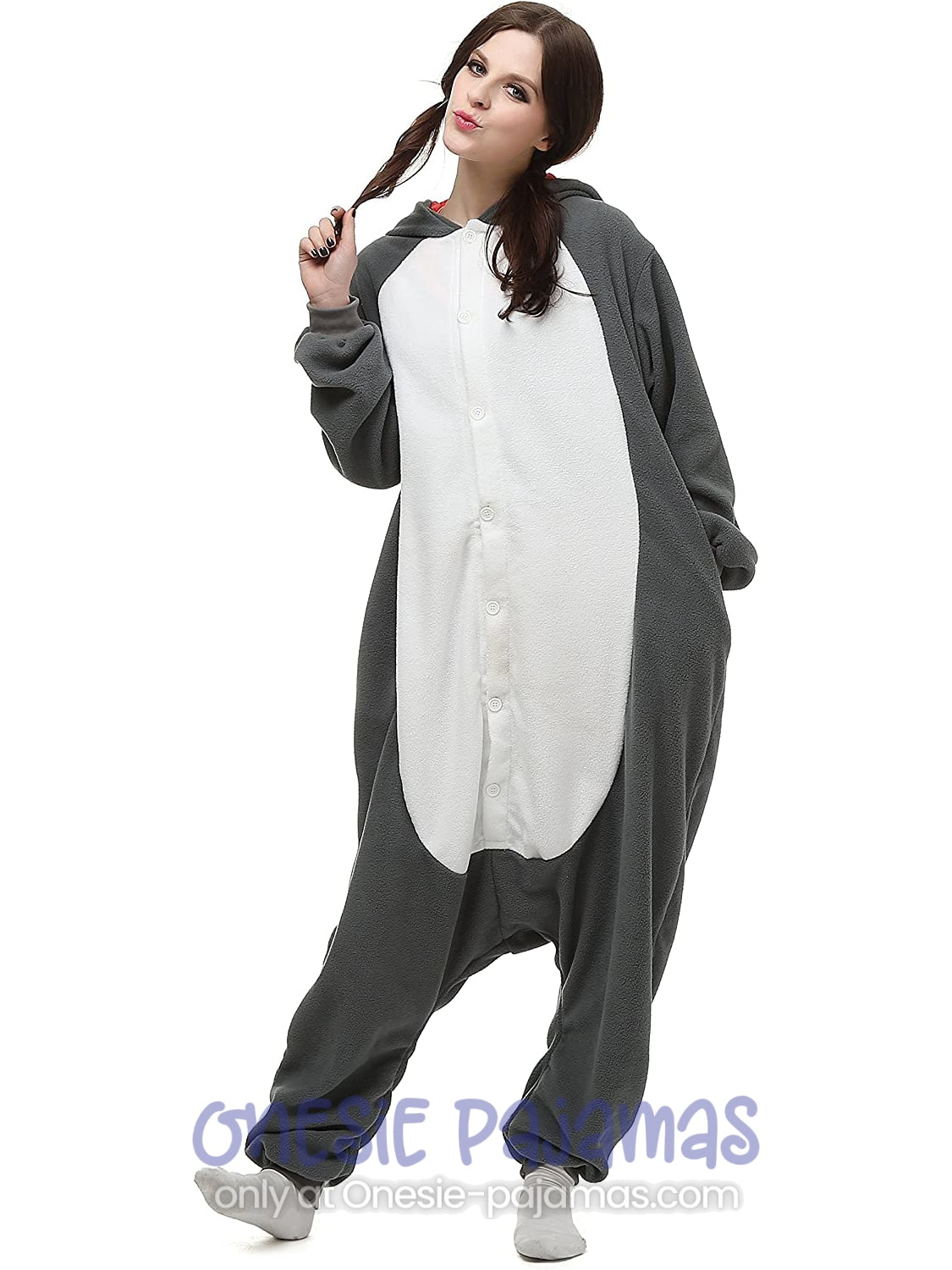 This Wolf Onesie is an Adult onesie pajamas Kigurumi costume for men and women featuring a design of a Gray and white wolf.