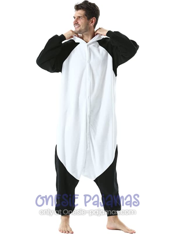 This Panda Bear Onesie is an Adult onesie pajamas kigurumi costume for men and women featuring a design of a black and white Panda Bear.