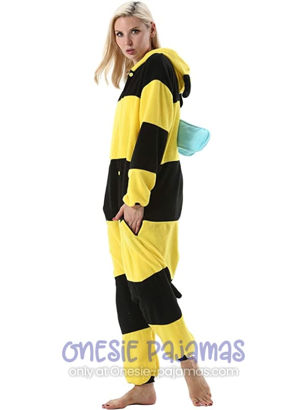 This Bee Onesie is an Adult onesie pajamas kigurumi costume for men and women featuring a design of a Yellow and Black Bee.