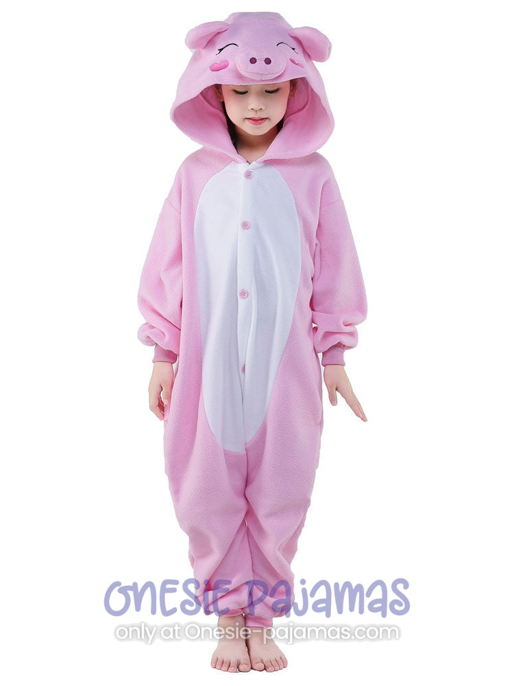 This Pig Onesie for Kids is a Kids onesie Pajamas Kigurumi Costume for boy and girl featuring a design of a cute pink and white pig!