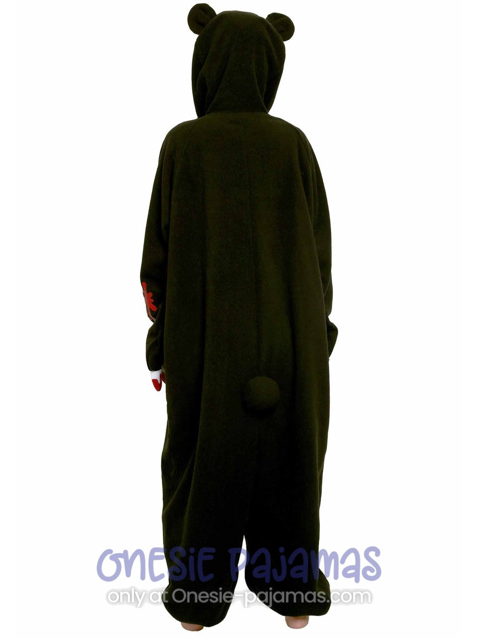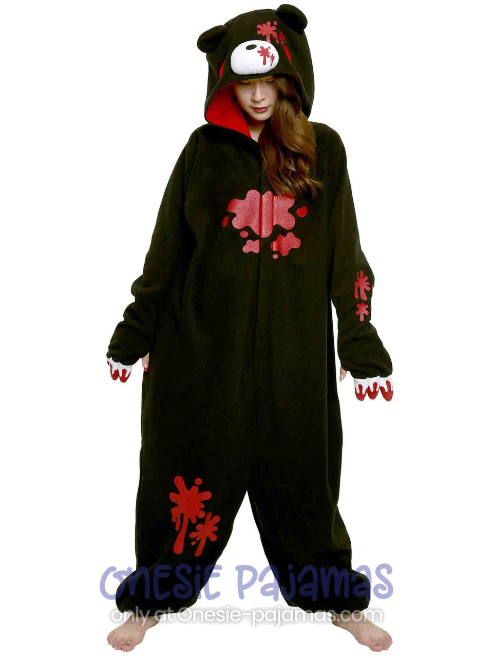 This Black Gloomy Bear Onesie is an Adult onesie pajamas Kigurumi costume for men and women featuring a design of the famous naughty black grizzli created by the Japanese artist Yurie Sekiya!